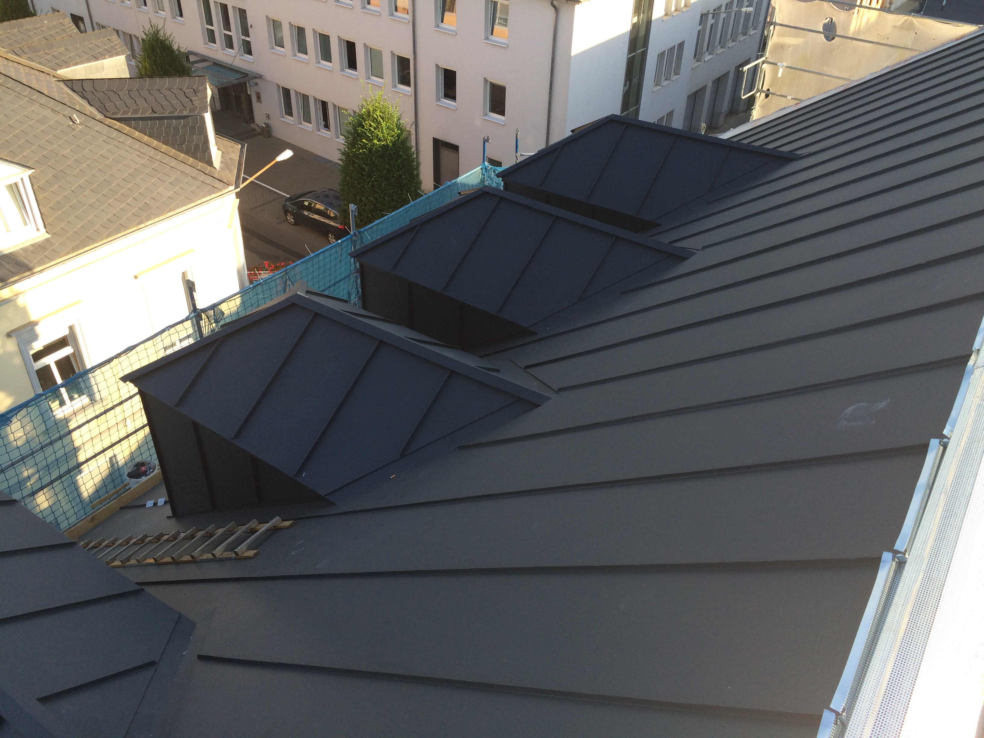 Auch Eindeckungen aus Alu-Zink Stehfalz, Trapezblech oder Sandwichelemente gehören zu unserem Angebot. Diese Materialien eignen sich besonders gut für Flachdächer oder modernere Architektur und bieten eine hohe Langlebigkeit und Witterungsbeständigkeit.